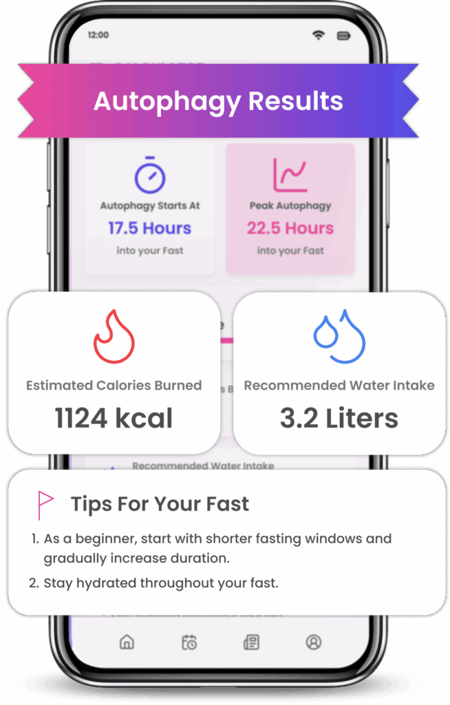 No two people fast the same way, which is why personalization is at the heart of our Autophagy Tools. Everyone’s metabolism, activity level, and health goals are different. That’s why the app adapts to you—calculating when your body is likely entering autophagy and adjusting recommendations based on your progress.
